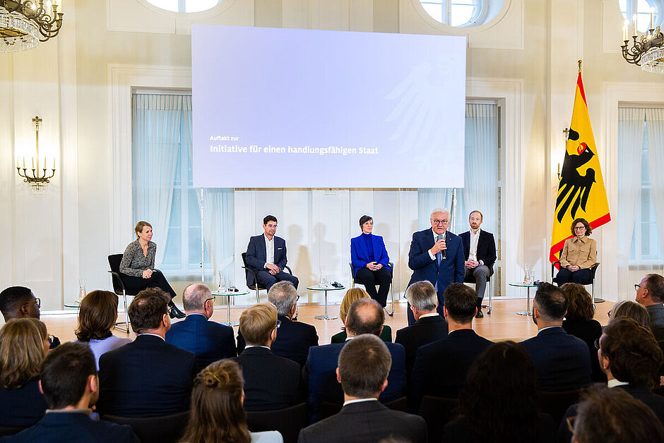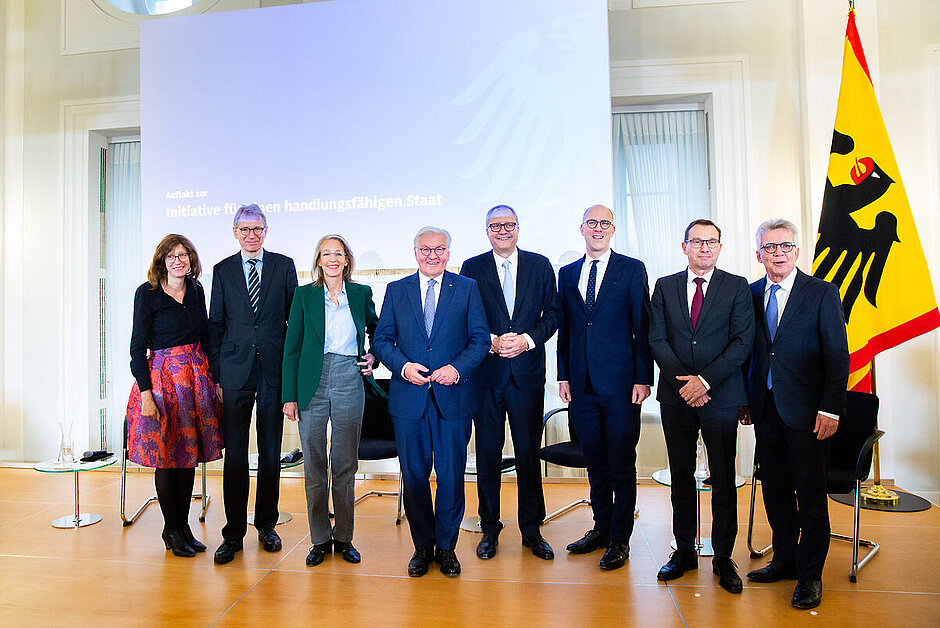 To address these fundamental challenges, Media Executive Julia Jäkel, law expert and former Constitutional Court President Andreas Voßkuhle, and former Federal Ministers Thomas de Maizière and Peer Steinbrück launched the “Initiative for an Effective State”. The initiative was under the patronage of German Federal President Frank-Walter Steinmeier.