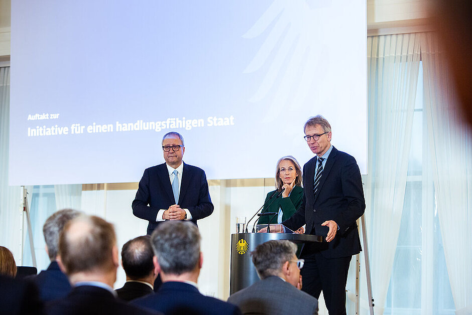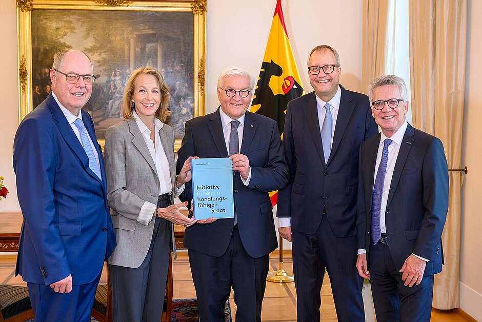 To address these fundamental challenges, Media Executive Julia Jäkel, law expert and former Constitutional Court President Andreas Voßkuhle, and former Federal Ministers Thomas de Maizière and Peer Steinbrück launched the “Initiative for an Effective State”. The initiative was under the patronage of German Federal President Frank-Walter Steinmeier.